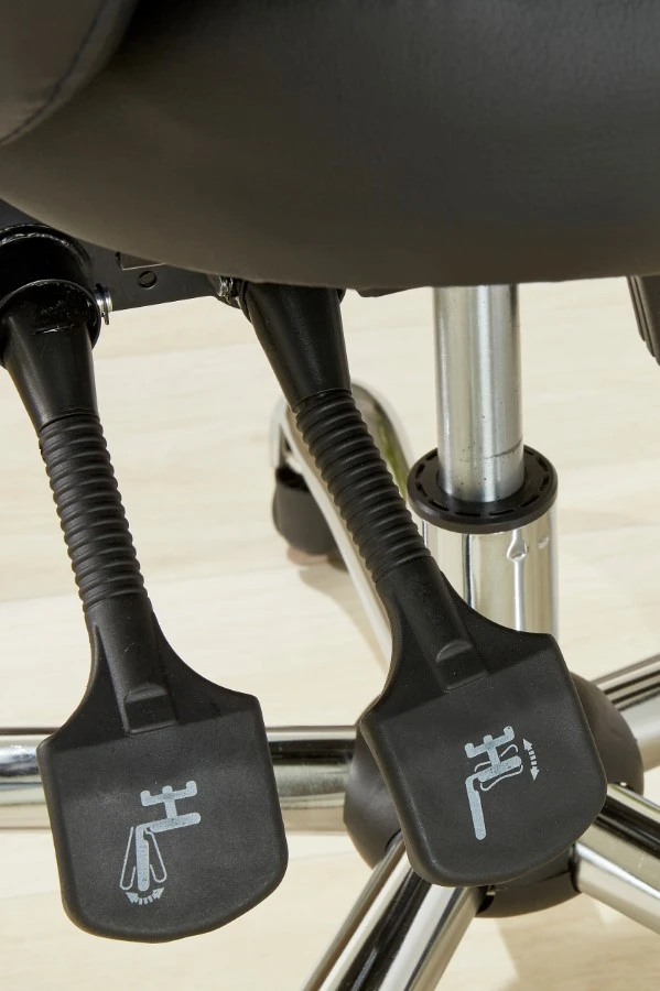 The seat is fitted with both seat slide and seat tilt which enables the user to change the depth and angle of the seat to the individual liking and ensures support behind the knees.