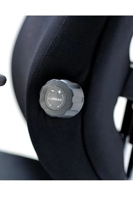 The backrest is fully adjustable in height and is fitted with contoured lumbar cushioning. Onto this is mounted an adjustable headrest ensuring the correct neck and spinal support.