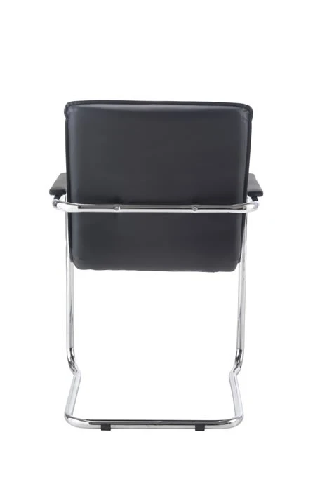Leather faced, cushioned visitors chair with smart chrome cantilever frame and padded armrests. Ideal as a boardroom or visitors chair.