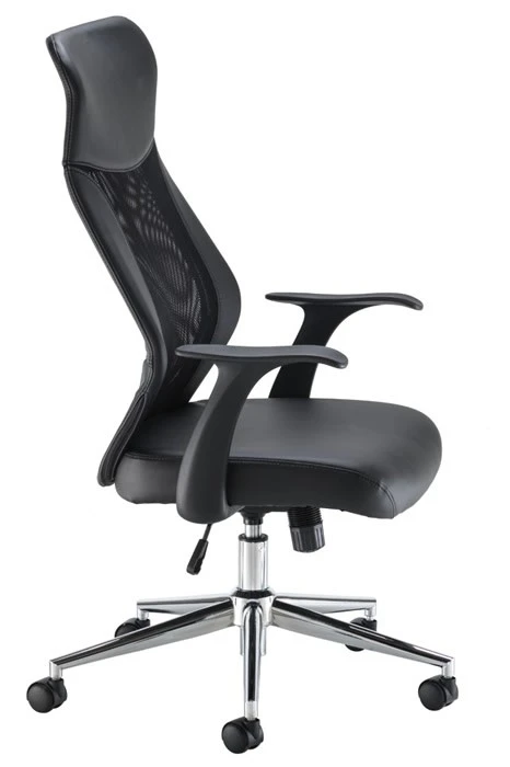 The Ergonomis is an excellent high backed mesh office chair with chrome supporting bars giving strength to the high backrest. This is fitted with a fixed leather headrest that can be easily cleaned. The deeply padded leather seat offers superb comfort. With fixed armrests finish this excellent ergonomic office chair.