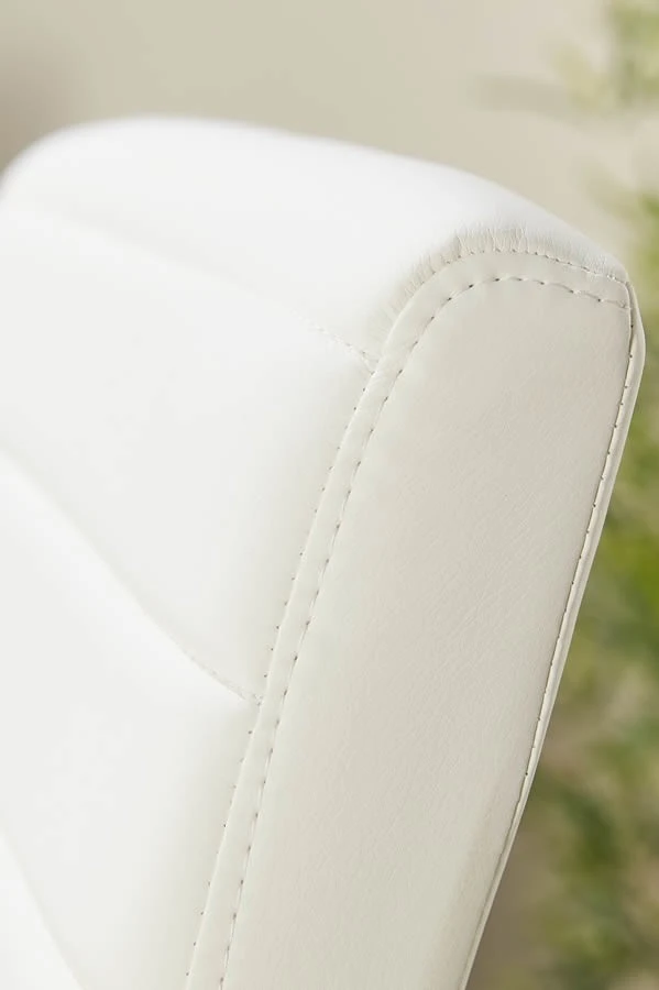 This stylish modern executive chair has attractive contrasting stitching with modern polished chrome arms. With a simple pull sideways lever under the seat, the back will recline freely and then simply push the lever back in and the chair will lock in the upright position.