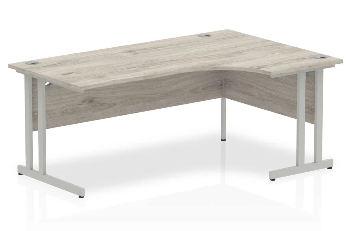 Do you want a desk that can fit in any corner and provide you with ample space and comfort? If so, you will love the Gladstone Grey Oak Cantilever Crescent Desk. This desk is a smart way of utilising your space and creating a cosy and productive work environment. The desk is available in either left handed or right handed versions, so you can choose the one that suits your preference and layout.