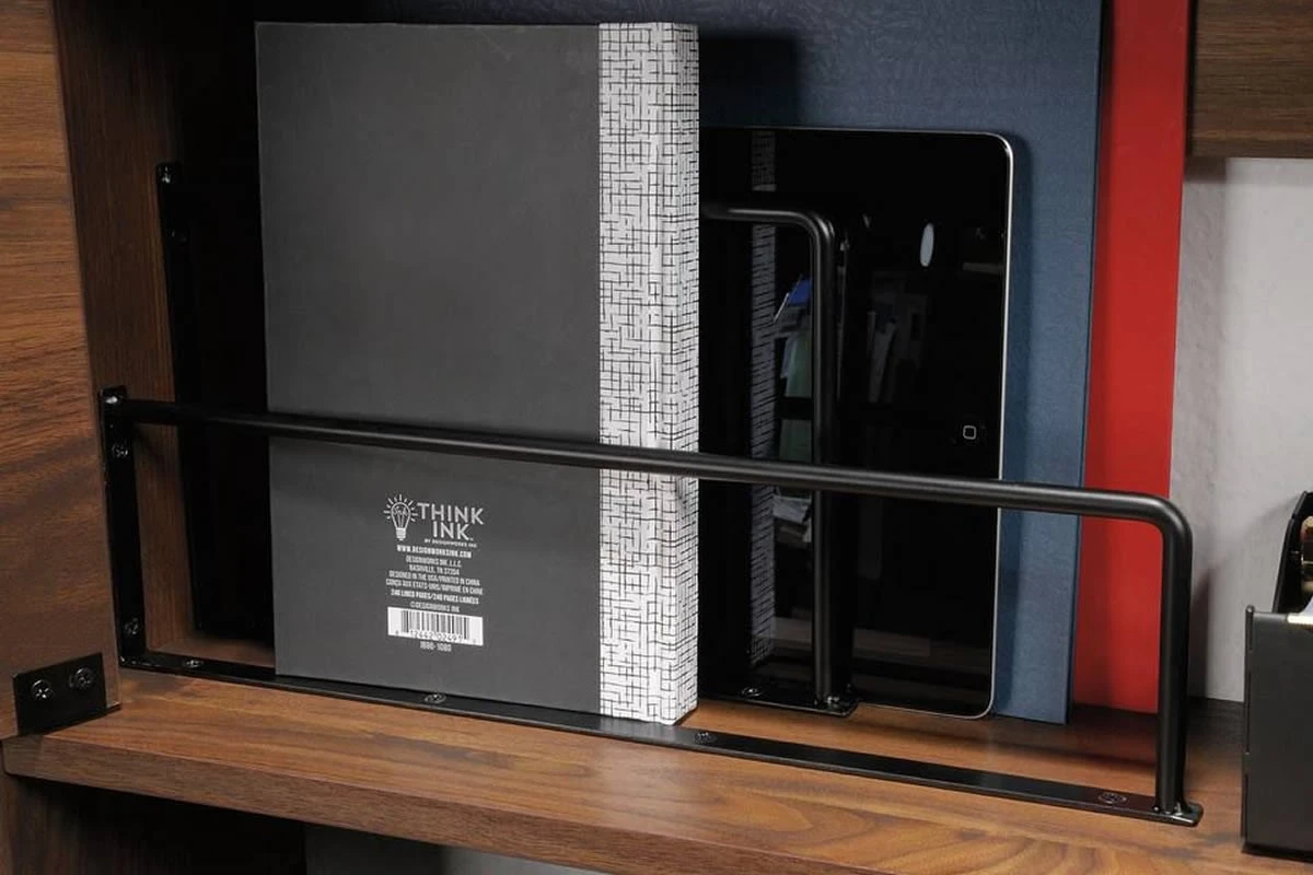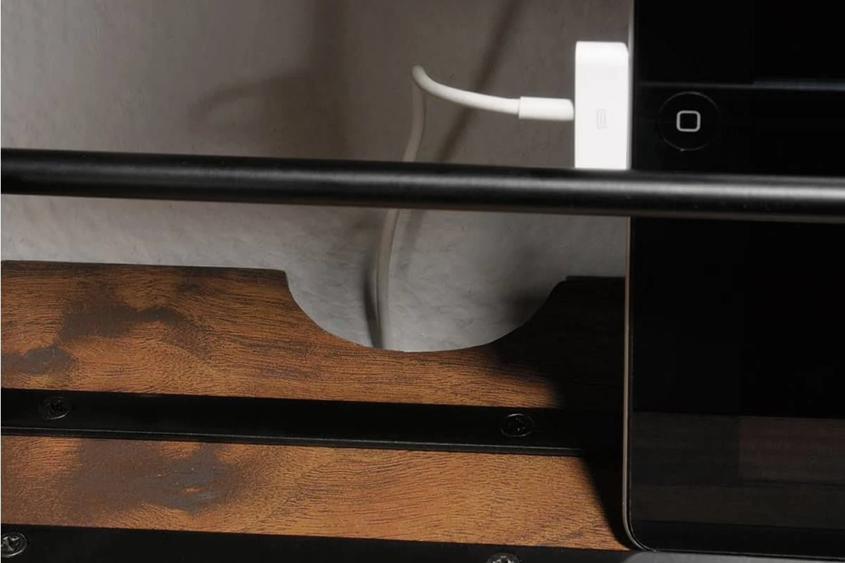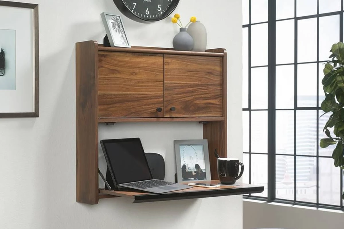 On top of these is an upper shelf to complete the look, great for displaying all manner of home decor. This wall desk also includes cord management pass-throughs so you can keep all your wires neat and stowed away.