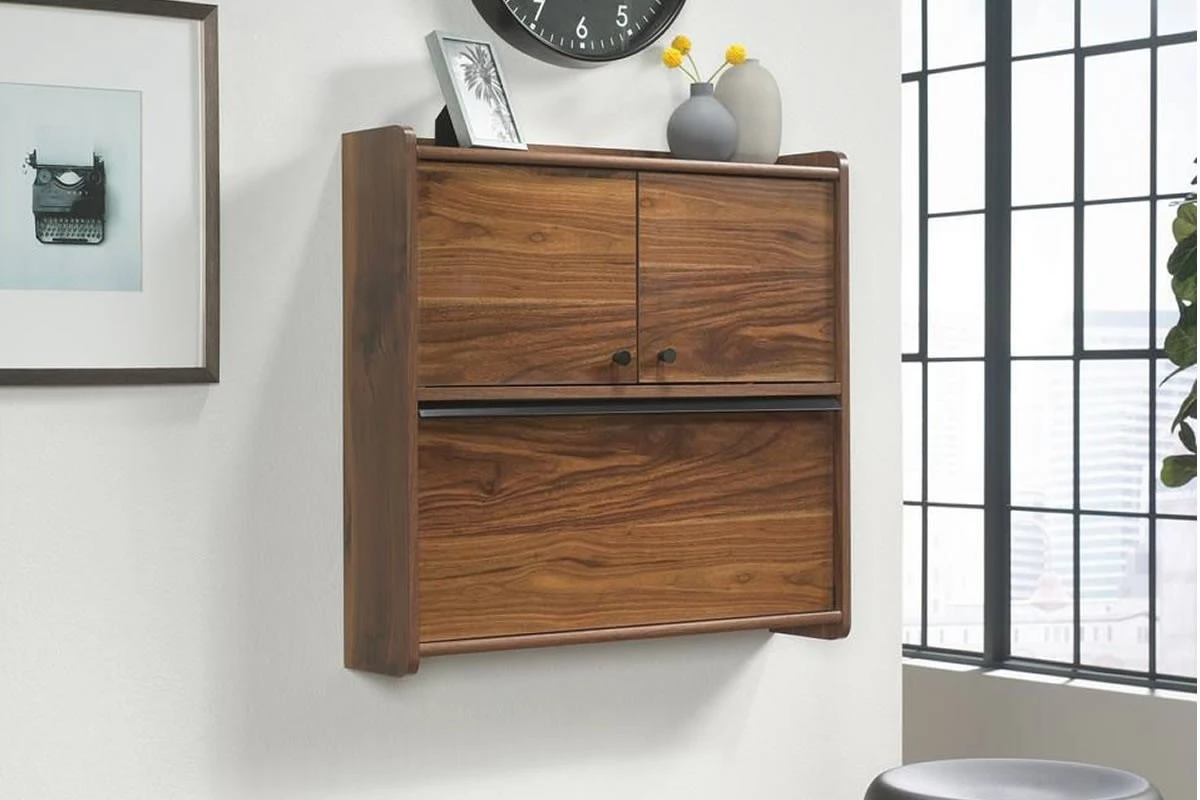 The Office Hampstead Park Wall Desk is our stylish and minimalist design option, perfect for all colour schemes and decor. Beautifully finished in a Grand Walnut effect with black accent handles, this sleek and modern styled space-saving wall desk provides a convenient solution for those with limited space, simple and versatile to hang anywhere within your home or office area.