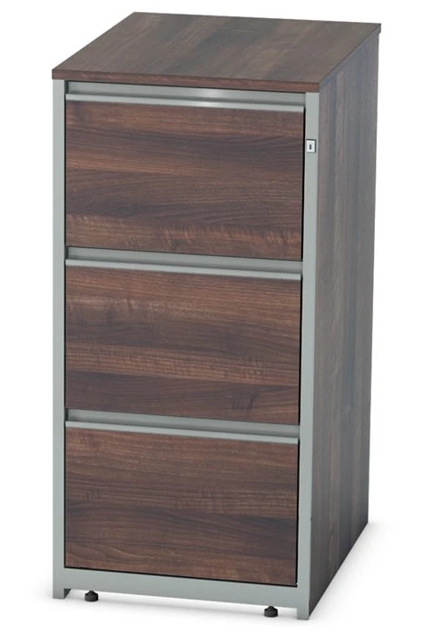 Keep your files organized and secure with the Harmony filing three drawer. This is a sleek and sturdy office furniture that comes fully assembled, except for the feet.