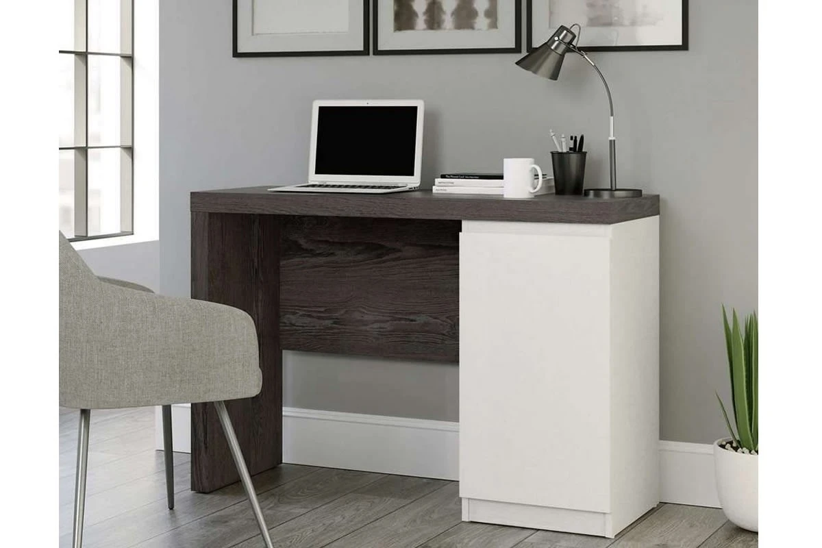 The Hudson Chunky Desk in Charcoal Ash finish and Pearl Oak Accents is a simple and stylish desk, showing off chic colours contrasting beautifully, it is sure to stand out, wherever you place it!