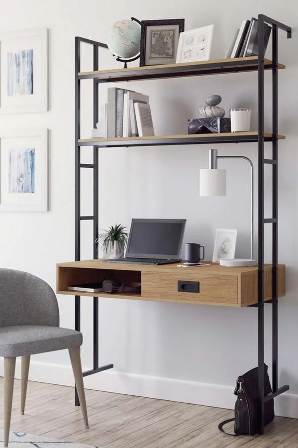 It has two open shelves which are great for display or office storage and there is also hidden storage behind a discreet sliding door for all the additional accessories you wish to be stowed away.