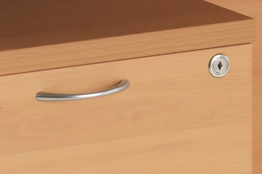 The pedestal drawer is mobile and fitted with easy glide castors and all drawer runners are metal smooth glide. Fitted with one lock that locks all drawers and supplied with two keys.