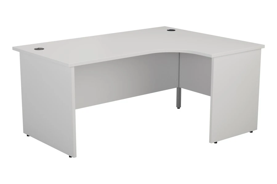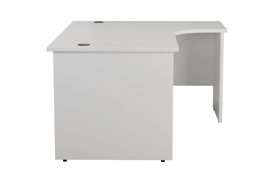 The Kestral Corner Desk is also a stunning piece of furniture that will enhance the look of your work space. It has a white finish that creates a clean and professional atmosphere. It also has stylish panel legs that add a touch of elegance and stability.