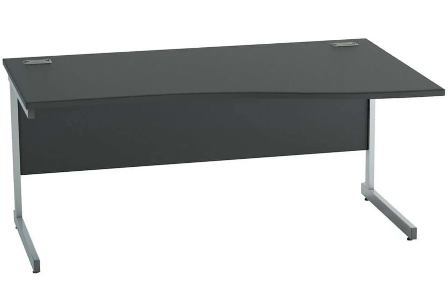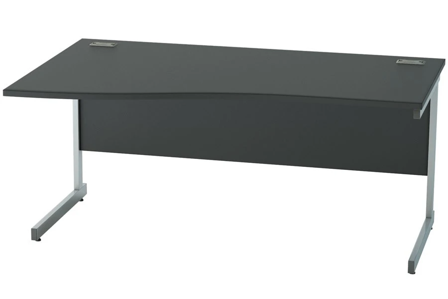 The Nene Black Wave Cantilever Desk is a modern, sleek and cost-effective office furniture solution that suits any working environment. This desk is sturdy and long-lasting, with a 7 year guarantee and metal to metal fixings. The desk has a 25mm thick and scratch resistant top, with 3mm radius edging for durability and support. The desk also has metal handles and locks for security, and a steel cantilever leg in grey for stability. The Nene Black Wave Cantilever Desk is part of a high-quality office furniture range that meets the highest standards of quality and durability, as certified by the FIRA GOLD award.