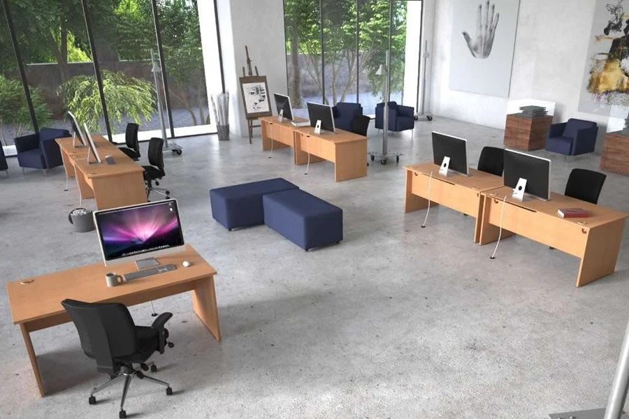 The Norton Oak Call Centre Cantilever leg Desk is a clever way of maximising seating and cutting the cost.