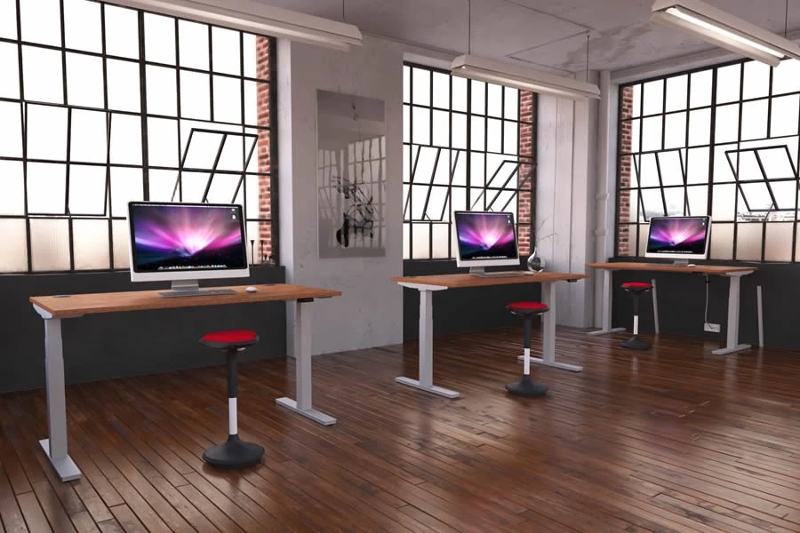 This desk has some amazing features that make it stand out from the rest. It has a safety stop function that prevents any accidents when moving the desk top, and an electronic raise/lower button that remembers your preferences. This means you can switch between sitting and standing positions with ease, or share the desk with others without any hassle. The desk also has a sleek and modern design, with tri-telescopic leg frames in white or silver, and multiple top sizes to fit any space.