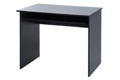 The modern stylish design has a carbon fiber looking desk top surface with curved front to give an ergonomic feel and cut outs at the back to make cable management easy.