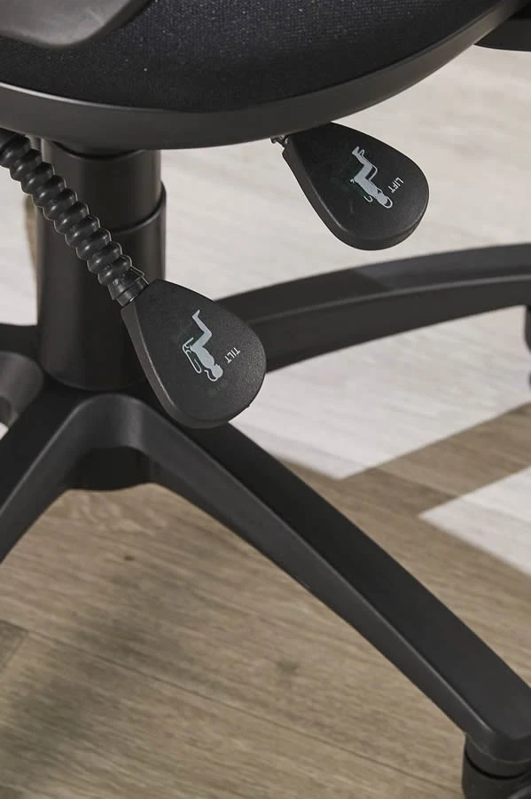 The deeply cushioned contoured seat is available in a large range of coloured fabric seat options and benefits from a heavy-duty gas strut which is weight tested gas strut to 26 stones.