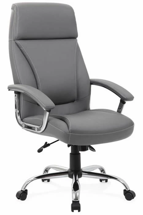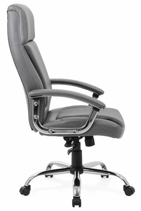 The Penza executive office chair has chrome loop arms that are deeply padded and a chrome base with easy glide chrome wheels.