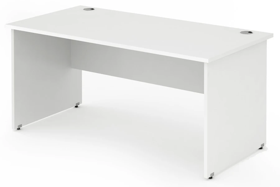The Straight Panel Office Desk is made from 25mm thick material that is scratch-resistant and easy to clean. It has a smooth white finish that matches any furniture. The desk has two cable ports in the worktop, so you can organize your wires and cables neatly. The desk also has metal-to-metal fixings that improve the rigidity and stability of the desk.