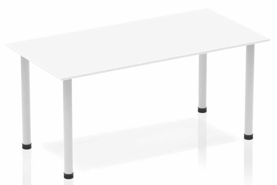 Are you looking for a simple and elegant meeting table that can accommodate your team and your clients? Do you want to create a professional and modern impression with your furniture and decor? If so, you might want to consider our Polar White Straight Table. This table is a freestanding meeting table in a classic rectangular shape that provides an excellent team working environment. It has a 25mm thick top that is spacious and durable, and attractive silver-coated post legs that add a touch of sophistication. It also has a 2mm ABS protective edging that protects the table from damage and wear and a heat-resistant white melamine finish that is easy to clean and maintain. The table comes in a polar white colour that matches any furniture and decor and creates a sleek and stylish look.