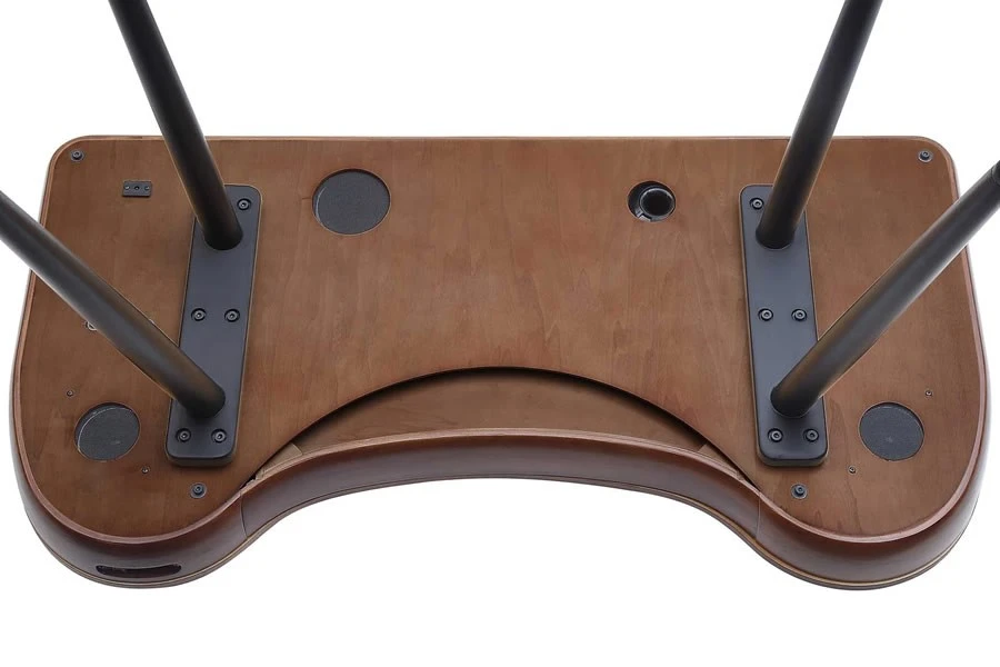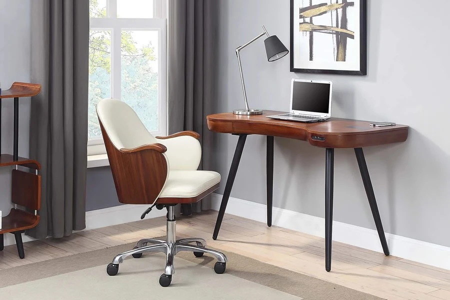 This desk is not just a piece of furniture, it’s a piece of technology. It features Bluetooth compatible speakers that deliver crisp and clear sound, a wireless charging pad that eliminates the hassle of cords, and two USB ports that let you connect other gadgets. You can also store your valuables in a hidden drawer that has its own wireless charger.