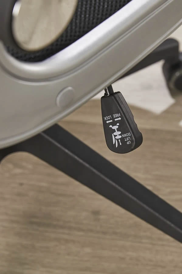 The Saturn chair also lets you customize it to your needs. You can fold the arms away if you want more space, or use them for extra support. You can also tilt the backrest to find your ideal reclining position or lock it in an upright position for more stability. And of course, you can adjust the seat height to fit your leg length.