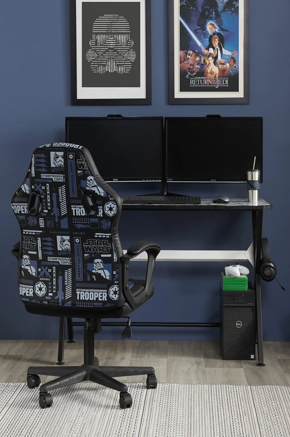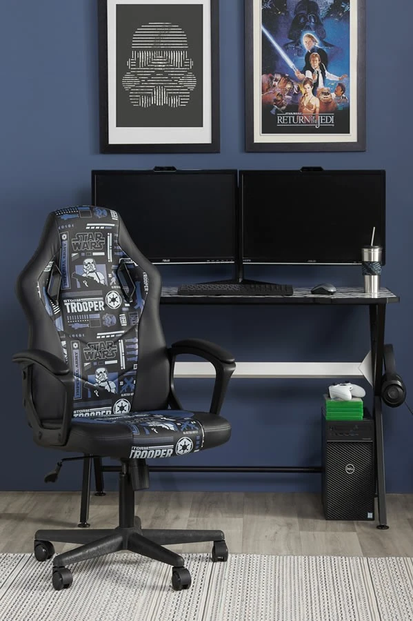 The Star Wars-themed gaming chair is covered in faux leather available in blue or red and features the iconic Stormtrooper making it a fine addition to your bedroom or office.