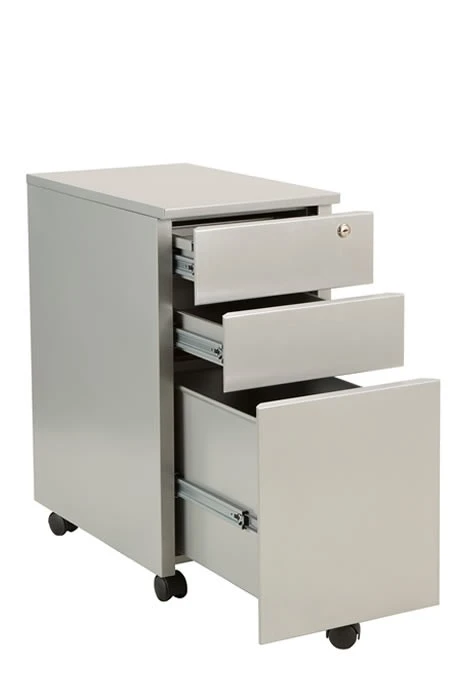 - 3 drawer pedestal has 2 box drawers, 1 Drawer has filing drawer, includes pen trayÂ