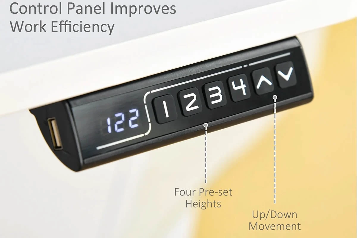 Intelligent height adjustable desk height raises the working height from 72cm -122cm therefore perfectly meeting the needs of people of different heights and variable office occasions. The four-level height automatic memory function can help you save valuable working time and quickly find the required height level